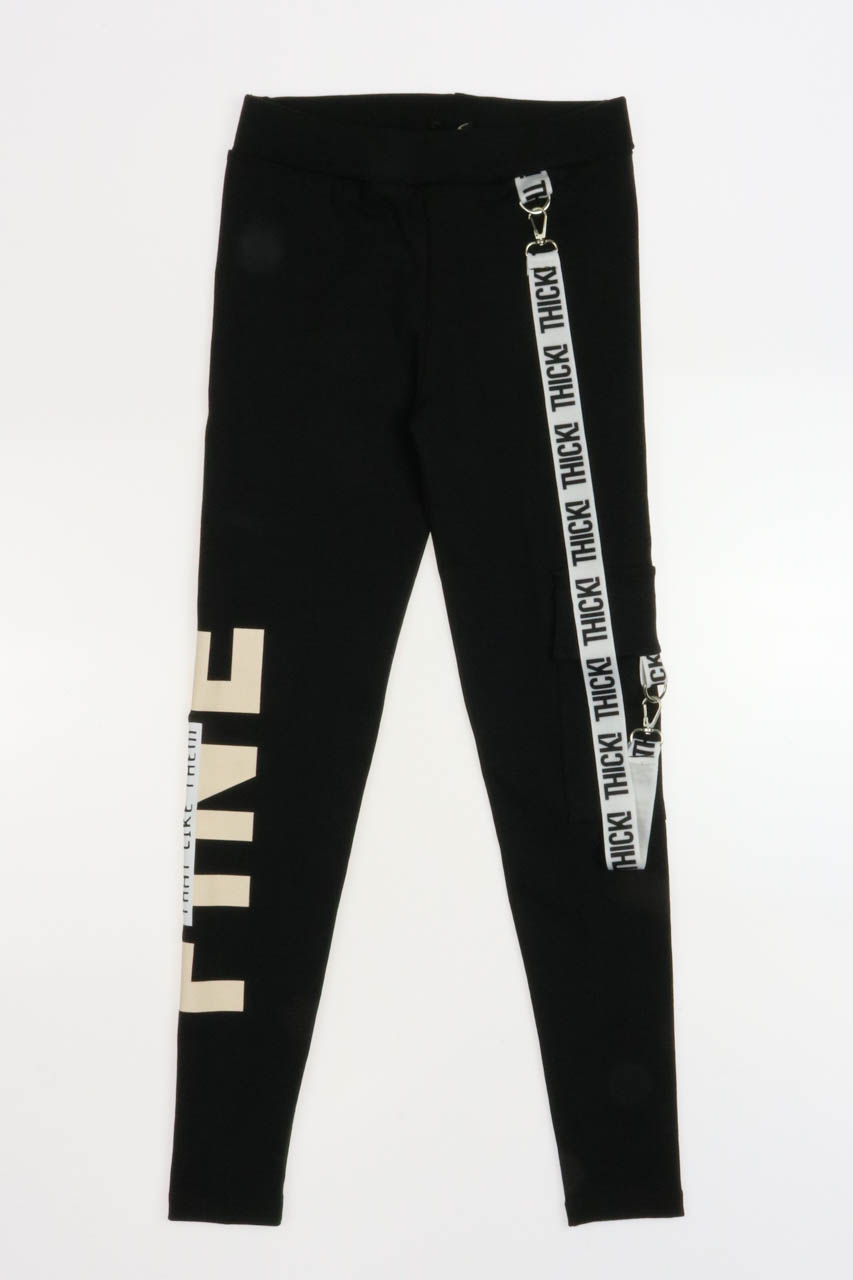Плотные лосины Yesmina оптом. Лосины украшены печатным принтом, съемным ремнем, сбоку пришит накладной карман.