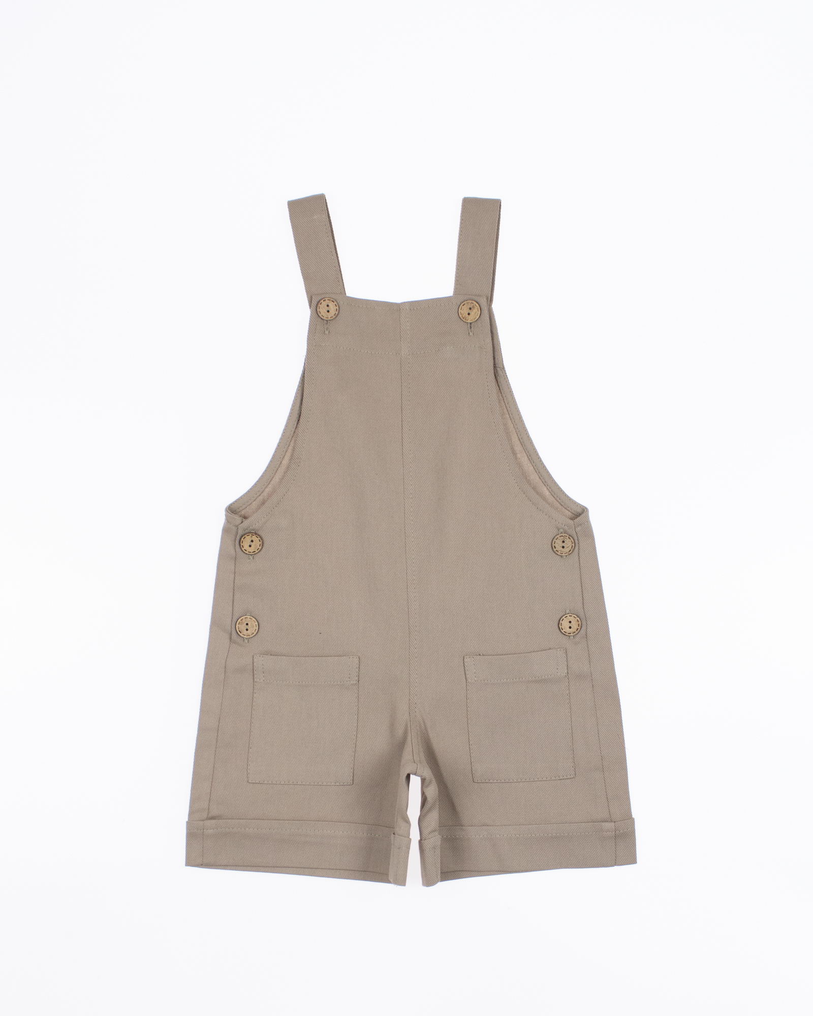 Комбинезон выполнен из хлопкового денима в пастельных тонах, спереди два накладных кармана, лямки пристегиваются на пуговицы, низ шорт оформлен отворотами. Детский джинсовый комбинезон для девочки оптом с доставкой по России в интернет-магазине Tamriko.