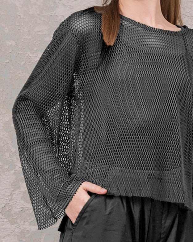 Сетчатый свитшот DMB свободного кроя оптом подходит для подростков в качестве сценического образа или одежды на каждый день. Модель с округлой горловиной и широкими рукавами без манжетов, умеренный оверсайз не сковывает движения, поэтому прекрасно подходит для занятий танцами. Свитшот в сетку станет отличным дополнением к любому гардеробу. С ним можно создать множество образов для праздников, вечеринок, фотосессий.