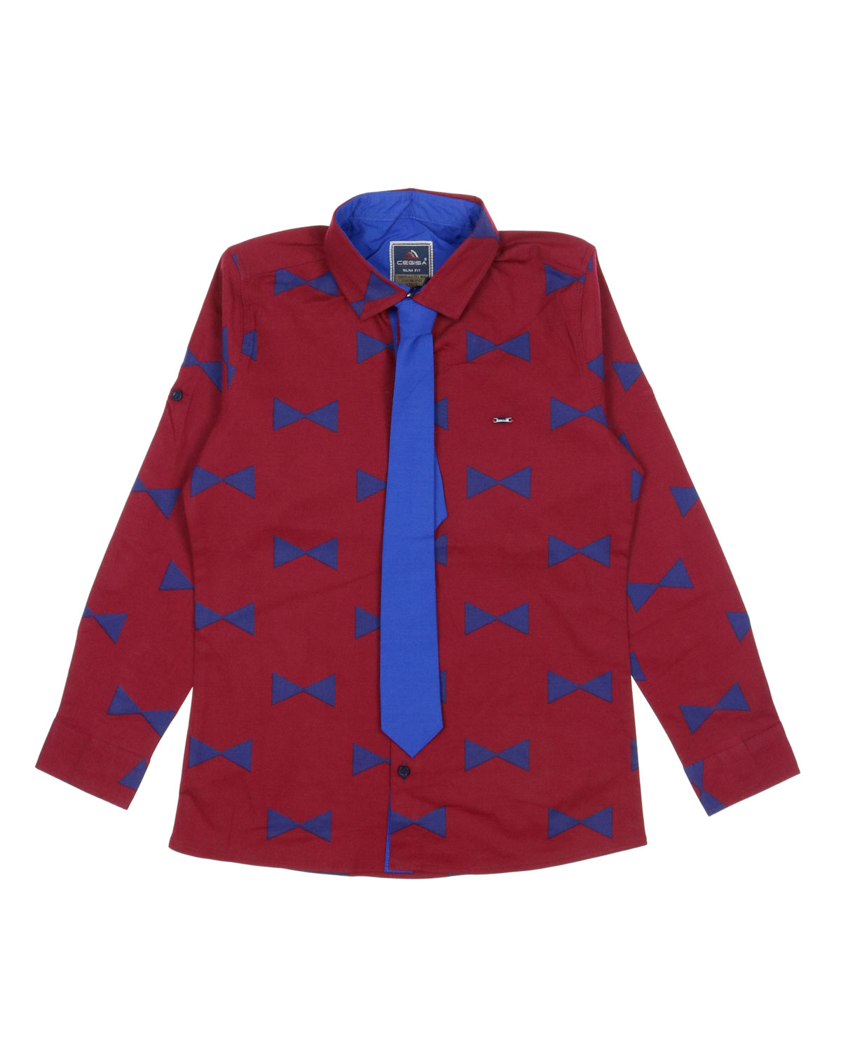 Рубашка для мальчика приталенного кроя  по всей длине застеговается на пуговицы. Ткань с узором добавит красок в стиле casual. Рубашка для подростка подходит как для классического образа с со строгими брюками, брюками-чиносами, так и с джинсами.