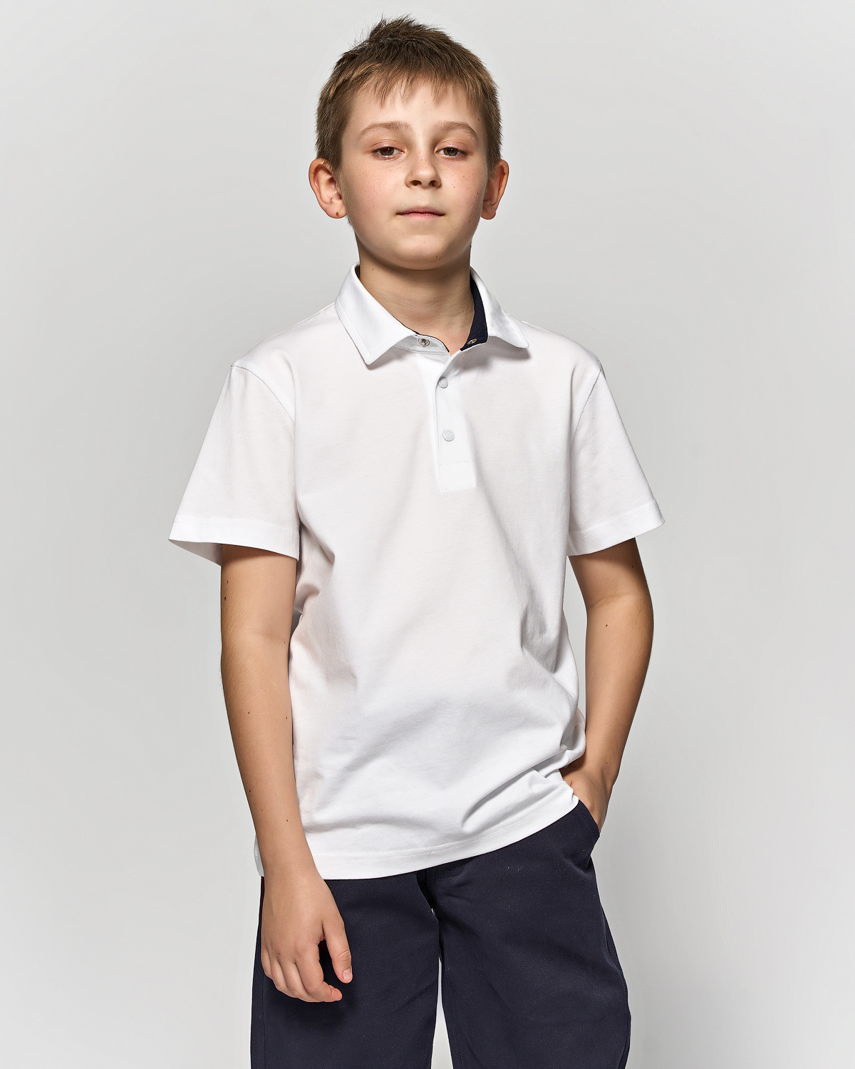 Однотонная рубашка- поло для мальчика Cegisa оптом. Поло прямого кроя с застежкой -кнопки. Изготовлена из натурального трикотажного хлопка. Модель с короткими рукавами пркрасный вариант для школы.