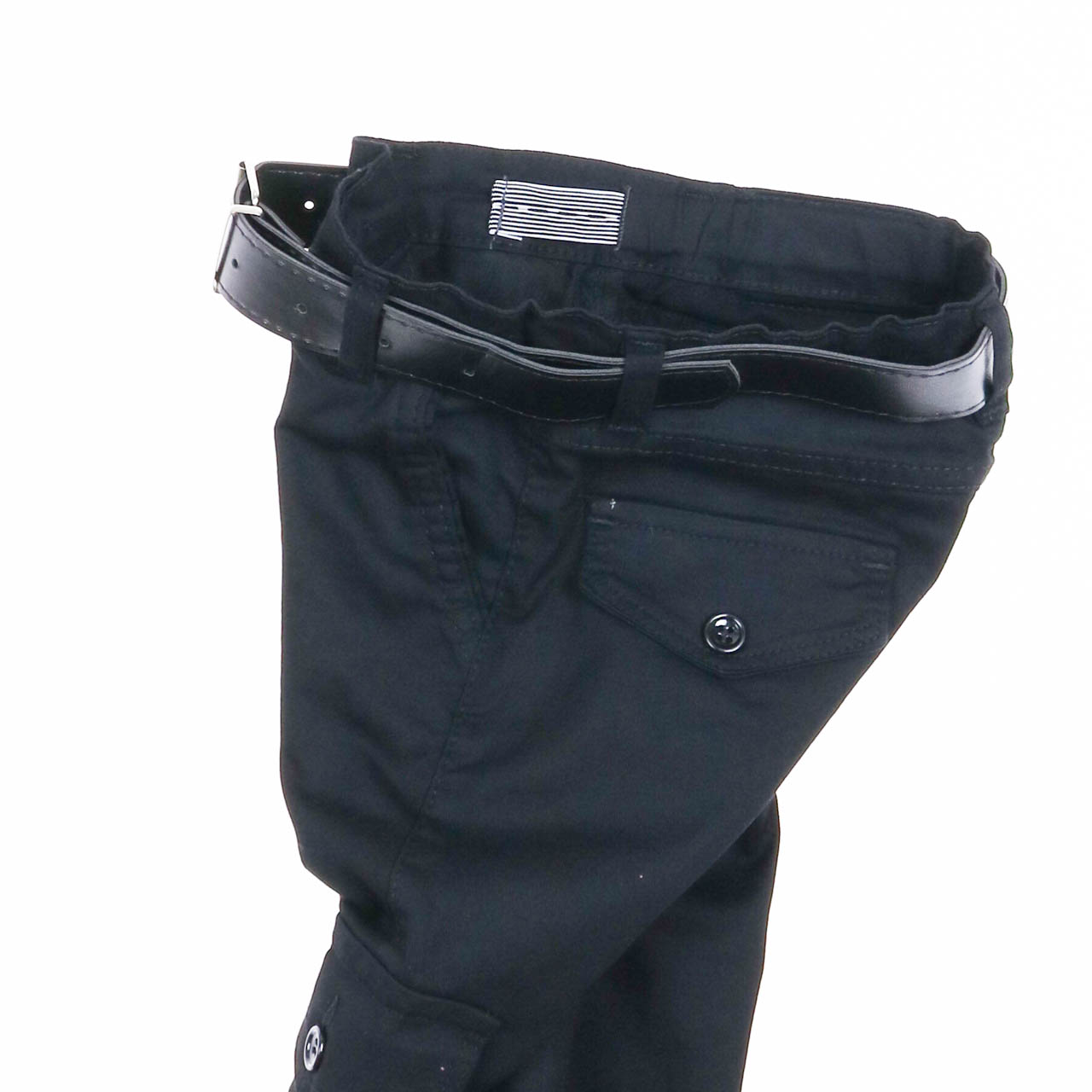 Брюки-карго из плотного хлопка, с боковыми и накладными карманами, манжеты на эластичной резинке. Внутри на поясе регулятор ширины талии.