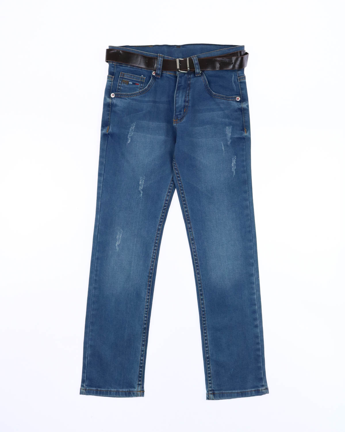 Классические джинсы синего цвета для мальчиков с добавлением эластана в классическом крое. Посадка талии средняя. Внутри на поясе есть регулятор талии.