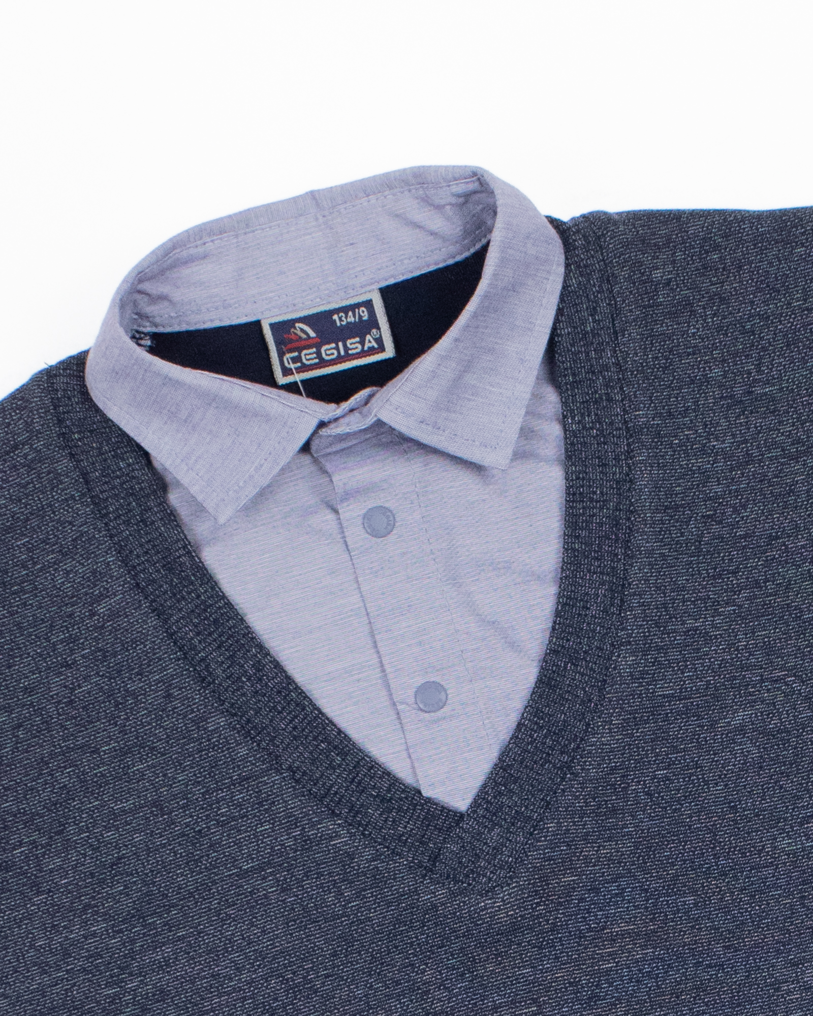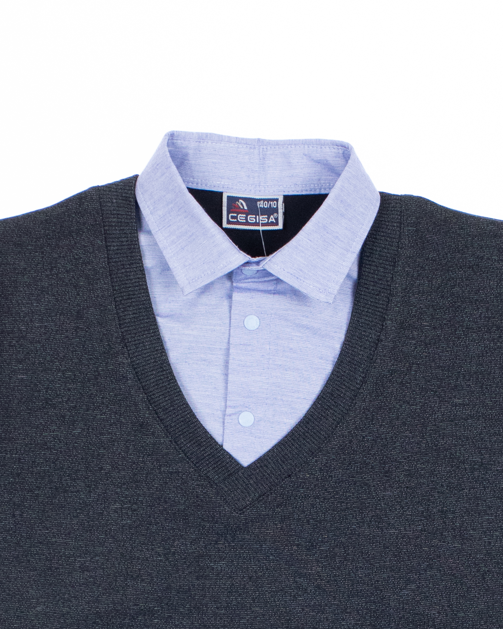 Школьный джемпер-обманка для мальчика оптом с имитацией рубашки выполнен из качественного хлопкового трикотажа с небольшим добавлением лайкры. Ворот сшит из рубашечной хлопковой ткани, застежка-кнопки. Джемпер-обманка выглядит как полноценный комплект рубашки и джемпера. Мальчик будет всегда опрятен в школе, сохраняя при этом официальный дресс-код. Качество наших изделий подтверждают многократные стирки в стиральной машине, при которых жилет-обманка сохраняет прежний вид, без деформации и окрашивания рукавов или ворота. Торговая марка CEGISA представляет большой ассортимент качественной, красивой, классической школьной и спортивной одежды турецкого производства для детей и подростков.
