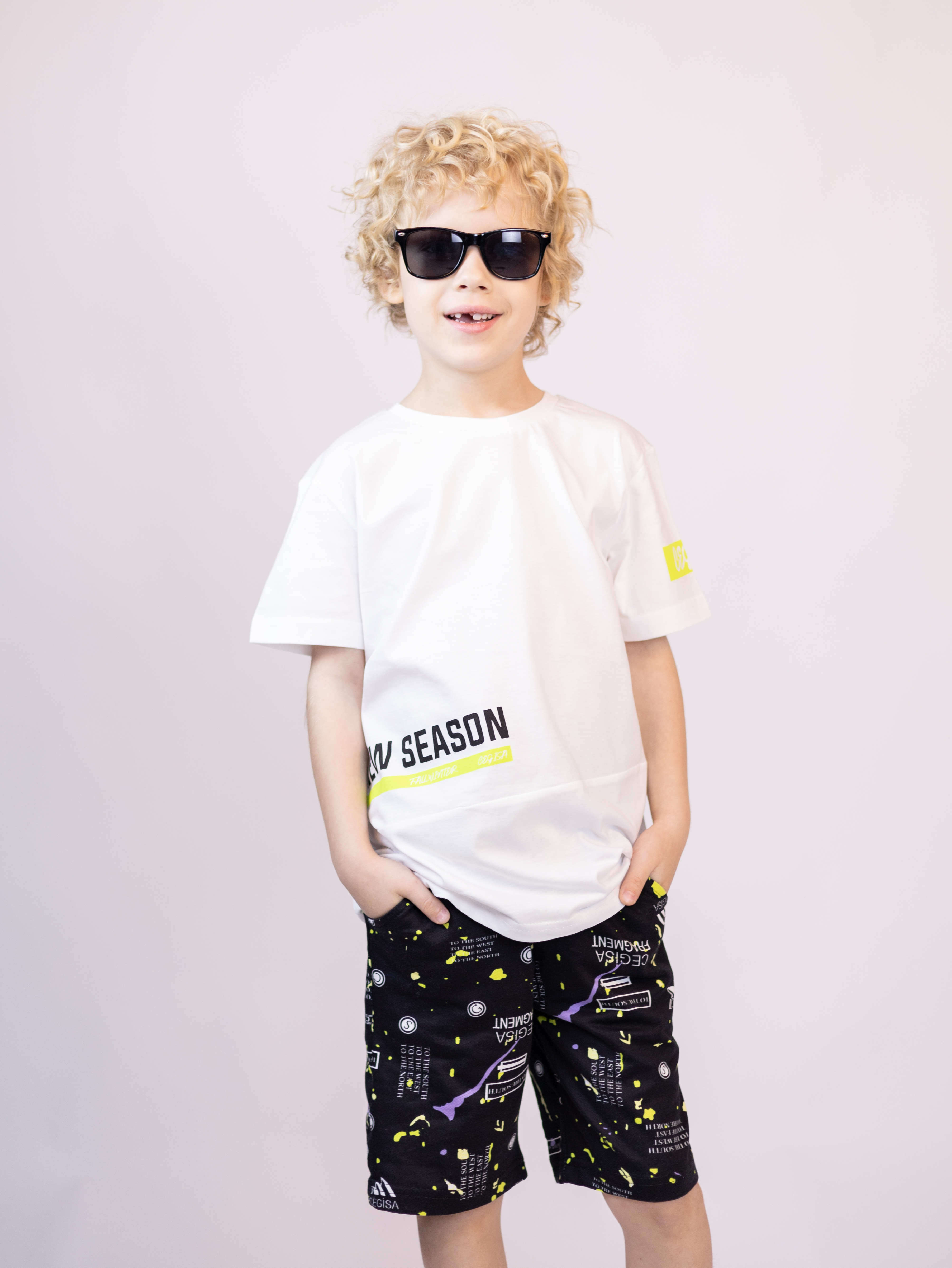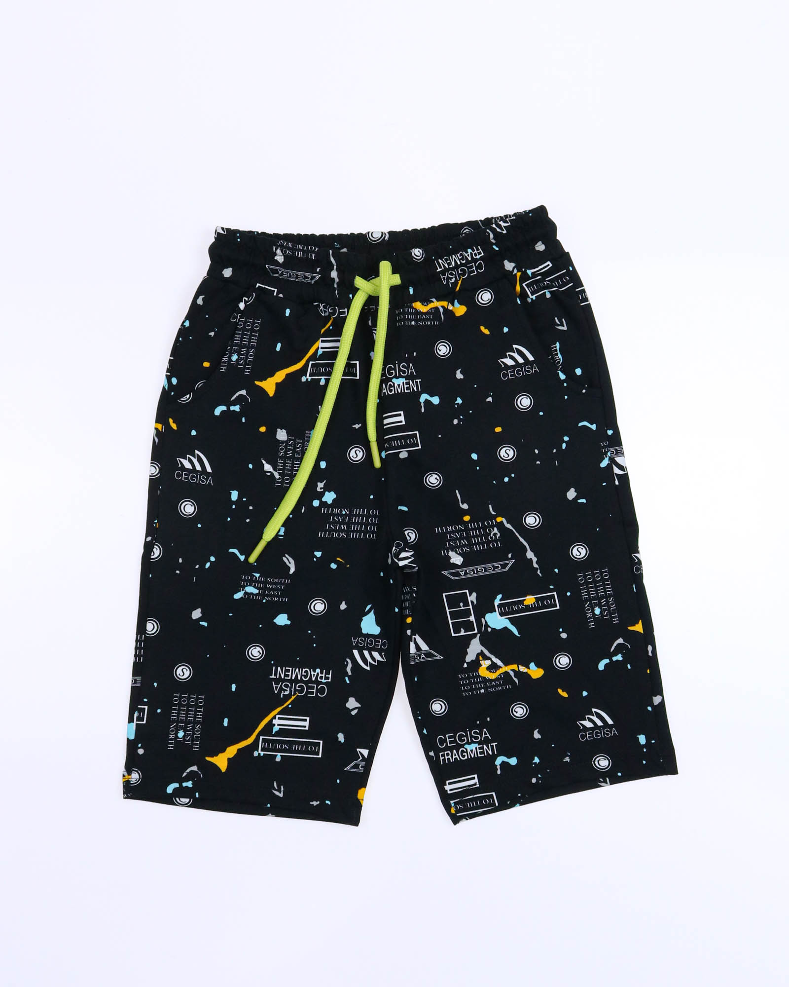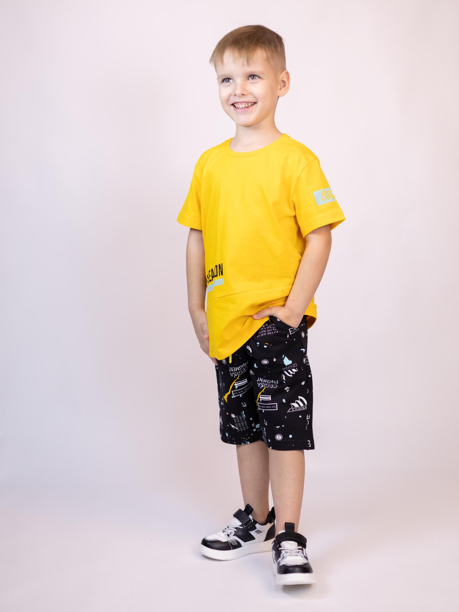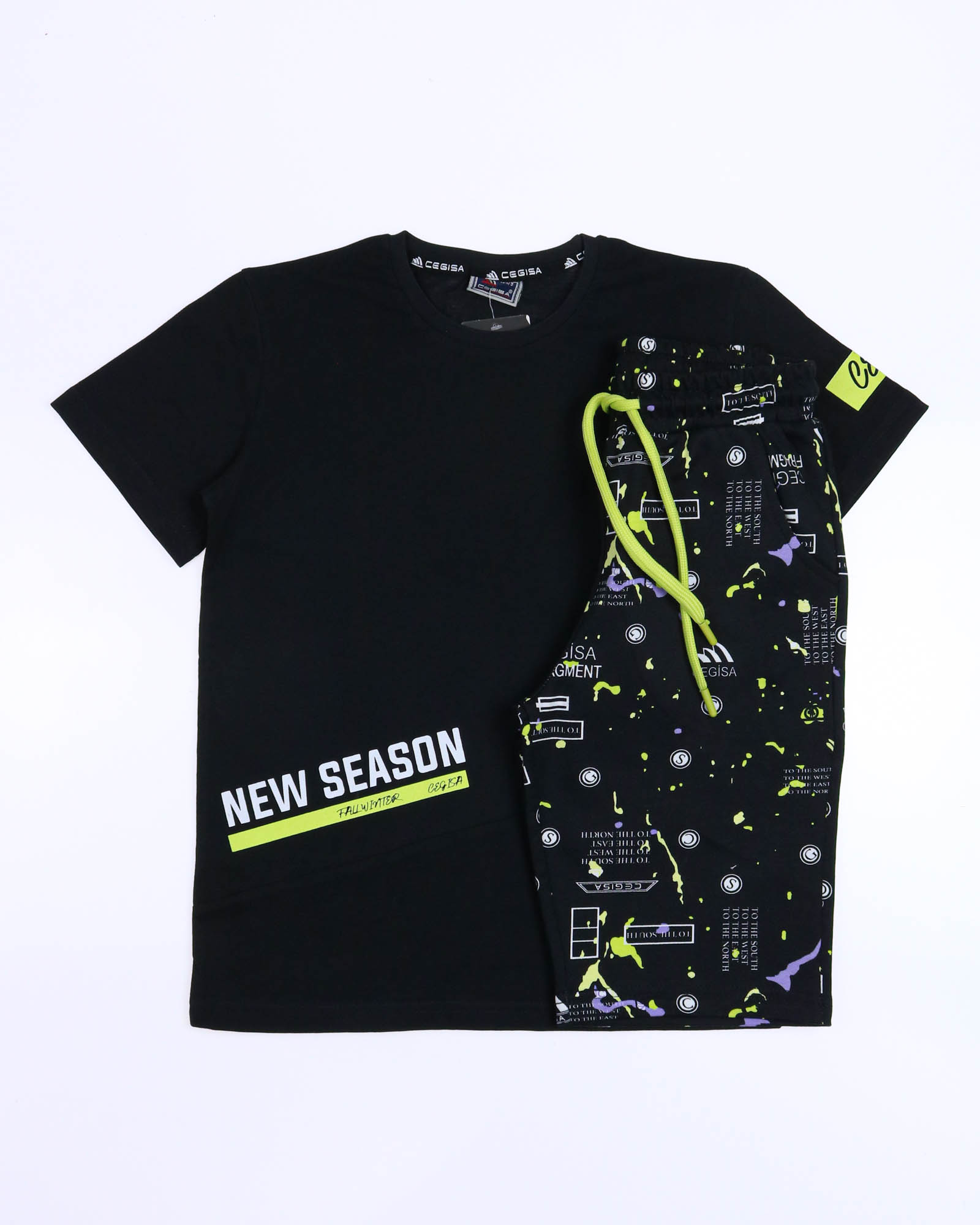 Трикотажный костюм CEGISA из хлопка оптом. Бриджи выполнены  из футера 2х нитки (петля)  с карманами, на эластичном поясе с регулируемым шнурком и оригинальным принтом. Футболка выполнена из кулирной глади, прямого кроя с округлой горловиной.