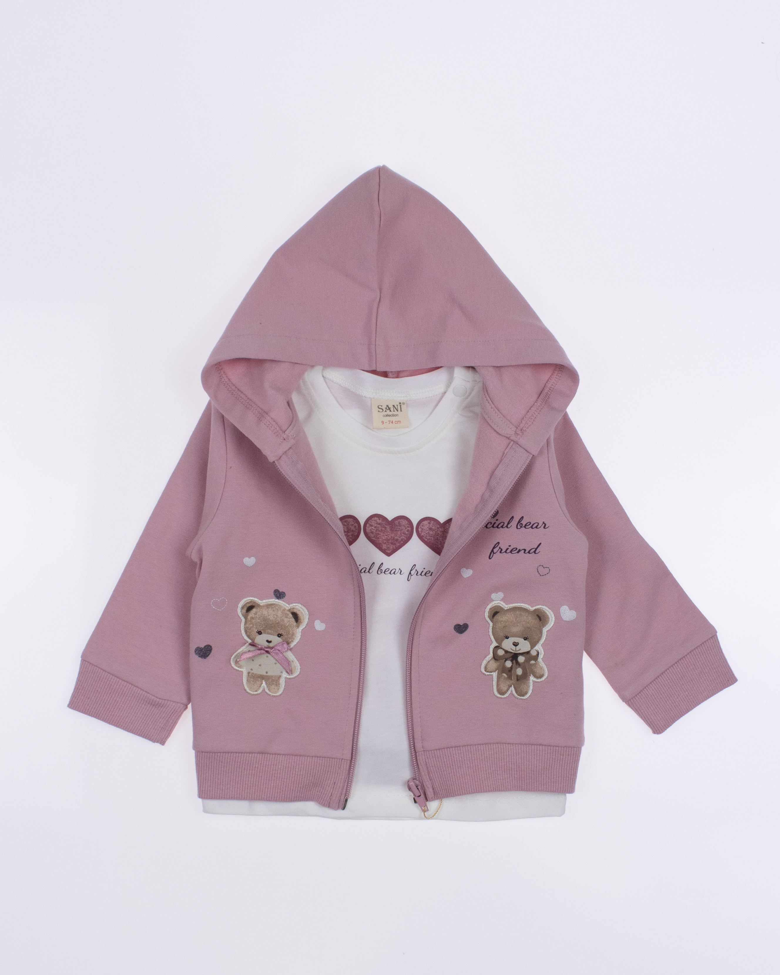 Теплый спортивный ясельный костюм оптом— это идеальный выбор для  маленькой модницы. Он состоит из трех стильных предметов, которые обеспечивают как комфорт, так и опрятный внешний вид. Костюм выполнен из качественного трикотажа  с начесом.