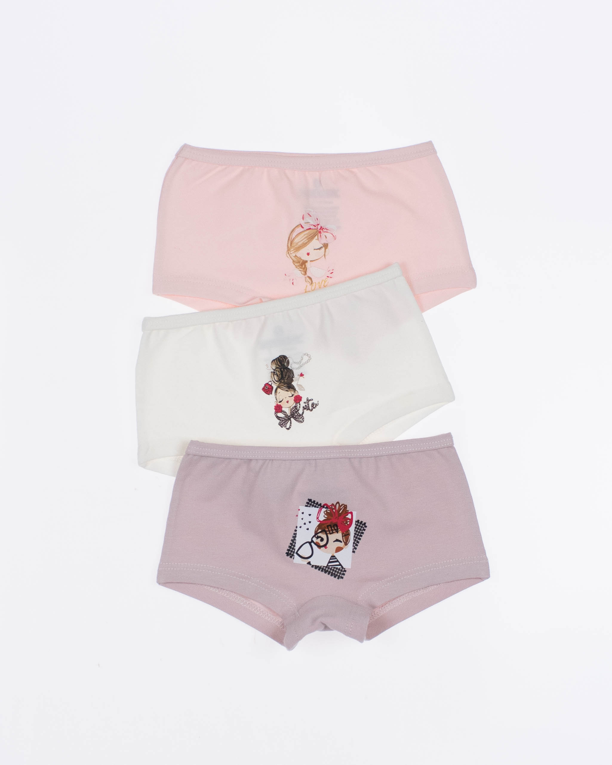Шортики BAYKAR для девочки оптом в нежной цветовой гамме. Милый приинт, резинки не впиваются в нежную кожу. Эластичное полотно прилегает к бедрам, натуральный хлопок обладает дышащими свойствами. Трусики представлены в трех пастельных оттенках.