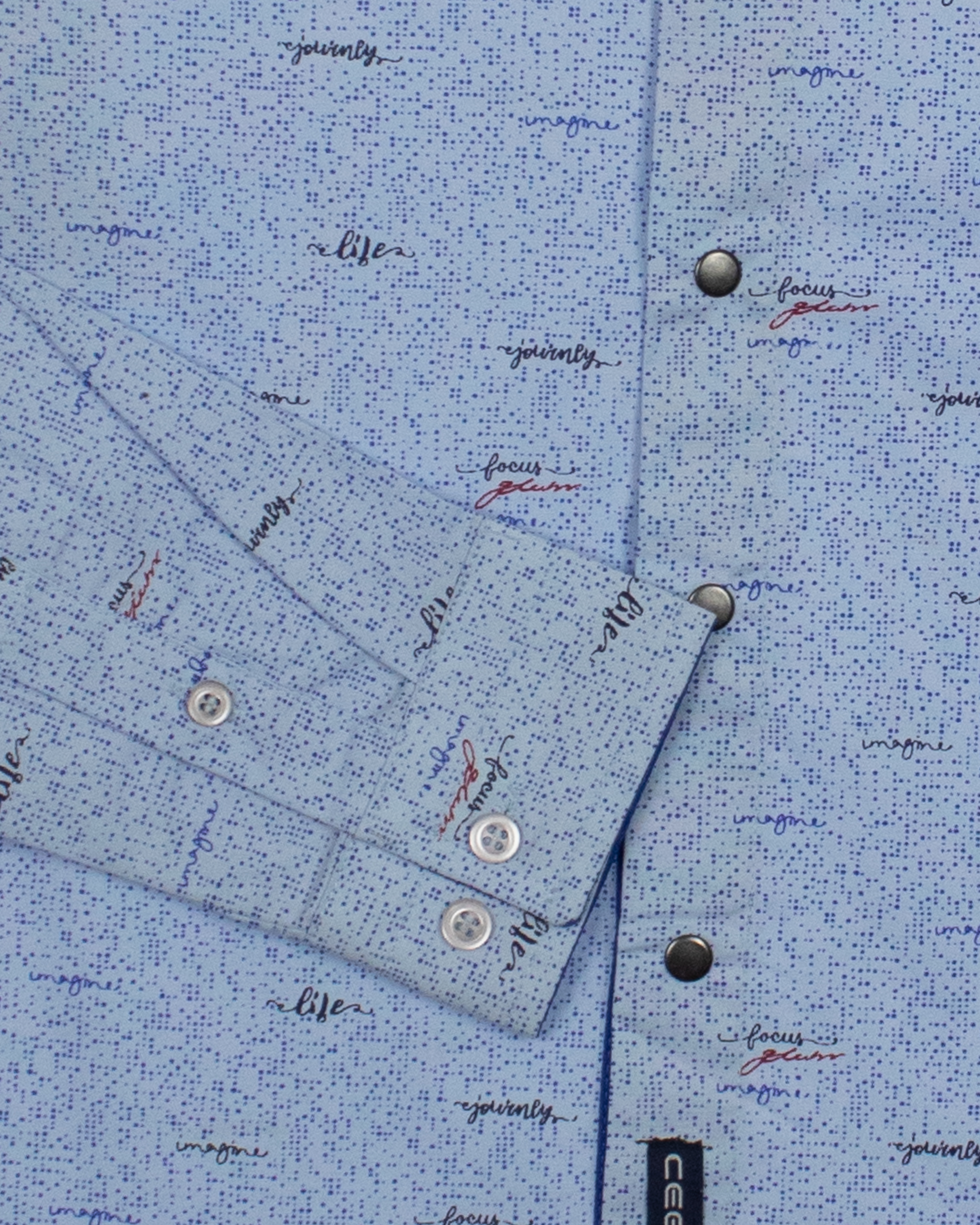 -Воротничок и манжеты внутри отделаны гладкой однотонной синей тканью, приятной на ощупь и износостойкой.
